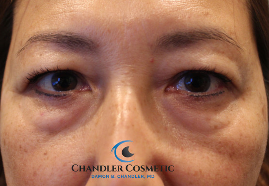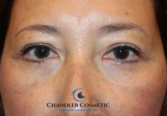 Upper and Lower Blepharoplasty Eyelid Surgery – 53 year-old woman searched for the top rated expert in eyelid surgery in the Philadelphia area. She had a consultation with Dr. Damon Chandler where she discussed her unhappiness with baggy, puffy upper and lower eyelids. Dr. Chandler discussed the proper treatment course to improve the look and contour of her eyelids and discussed all the risks and benefits of such a plastic surgical procedure. After choosing Dr. Chandler, she underwent an outpatient upper and lower eyelid lift. This procedure is performed under general anesthesia in an outpatient surgical center that is top rated for Pennsylvania. She is shown with a beautiful artistic result. 4 months following her cosmetic eyelid procedure with Dr. Damon Chandler she is thrilled with how her upper eyelid crease is now improved, allowing her to be able to apply proper cosmetic makeup to the lids including mascara, eyeliner or eye shadow. She also has less heavy eyelids. Additionally, her lower eyelid bags and puffiness are smoothed away revealing gorgeous eyelid contours. Patients from Philadelphia, South Jersey, and from around the country travel to Dr. Chandler for his Harvard training, extensive experience, and results that are second to none.